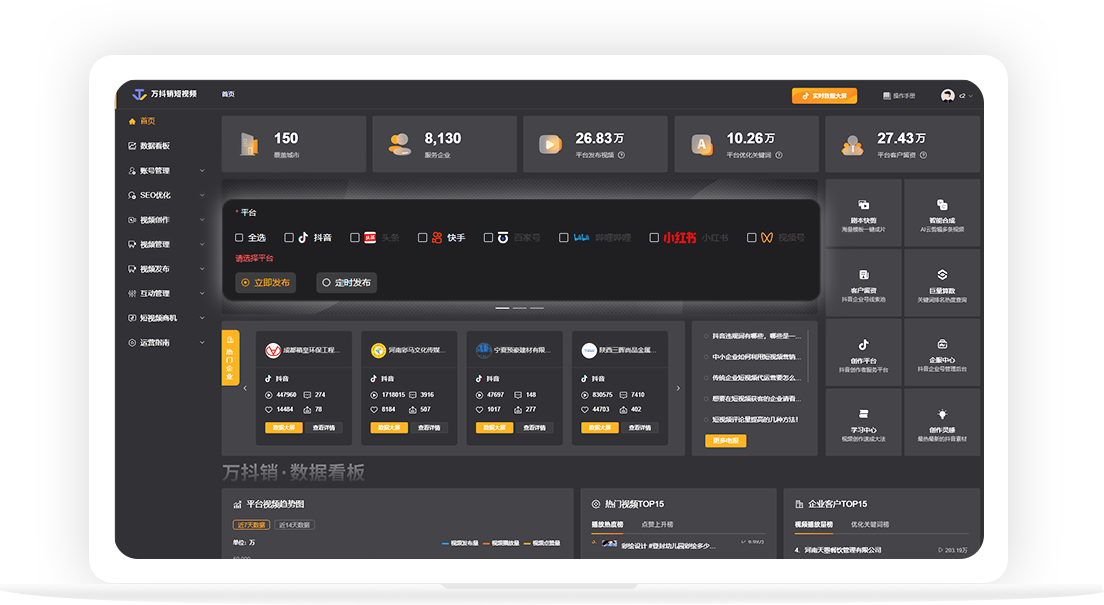 整合多個頭部平臺,抖音、快手、頭條、西瓜、B站、小紅書、視頻號視頻全網(wǎng)分發(fā),一鍵智能發(fā)布,省時省心省力,